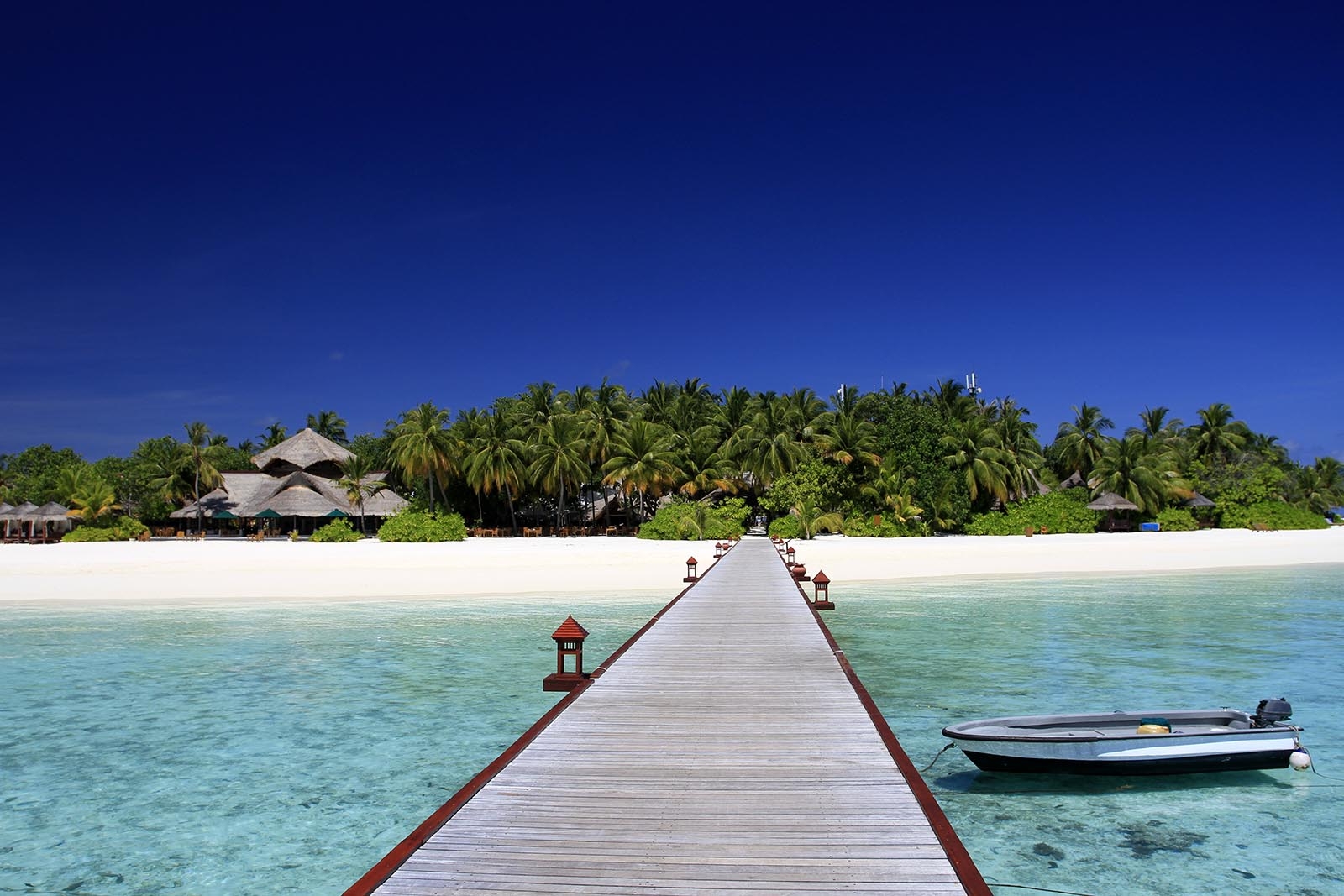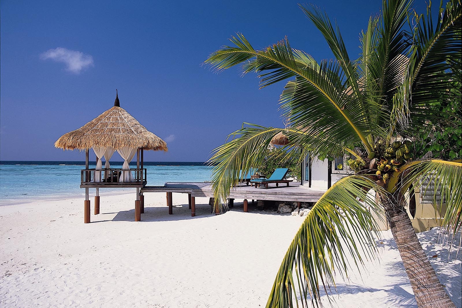 Accessible only by speedboat from Ibrahim Nasir International Airport, this luxe resort on a private island is surrounded by white-sand beaches and coral reefs.