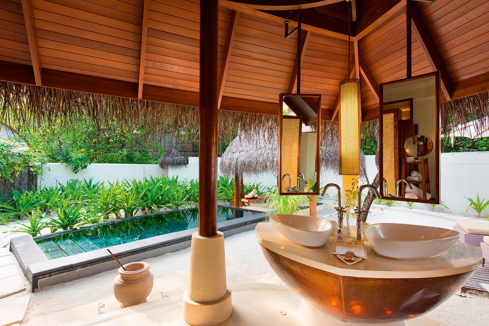 Tucked away in lush gardens, these villas are 350sq m and come complete with king-size bed, plunge pool and a large garden with table and chairs – perfect for lazy brunches or sunset tipples. Wooden terraces are furnished with sun loungers for a post-meal siesta. Bathrooms feature two sinks, a separate toilet, a freestanding bath tub and an indoor or outdoor shower. These rooms include individually controlled air-conditioning, free WiFi, telephone, safe, a writing desk and iPod connection. Extra bed charges: Complimentary for children between 0-6. USD 190 for children between 7-12 years old in includes breakfast, USD 240 for Half Board, and $305 for All Inclusive, USD380 for ages 13 and up includes breakfast, USD 480 for Half Board, and $610 for All Inclusive. All extra bed charges are inclusive of tax.