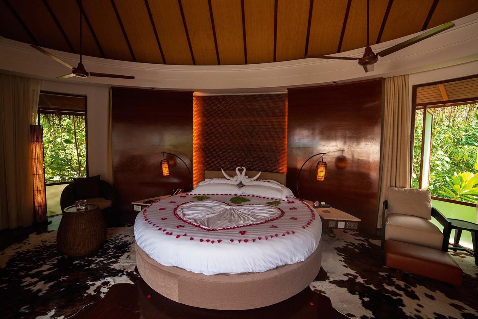 Hovering over the turquoise lagoon, these open-plan villas are 100sq m and are kitted out with a nautical colour palette, a roof shaped like an upturned boat and a king-size bed. The spacious bathroom feature his and hers wardrobes, indoor and outdoor showers, a separate toilet and a freestanding bath tub. Romantic canoodling or blissful sunbathing can be had on the expansive private deck, which is furnished with sun loungers and comes complete with a come-hither plunge pool; those fancying a spot of sea-paddling can dive off from the adjoining lower deck. This room has free WiFi, a telephone, an iPod connection, individually controlled air-conditioning, safe, a writing desk and jaw-dropping ocean views. Extra bed charges: Complimentary for children between 0-6. USD 190 for children between 7-12 years old in includes breakfast, USD 240 for Half Board, and $305 for All Inclusive, USD380 for ages 13 and up includes breakfast, USD 480 for Half Board, and $610 for All Inclusive. All extra bed charges are inclusive of tax.