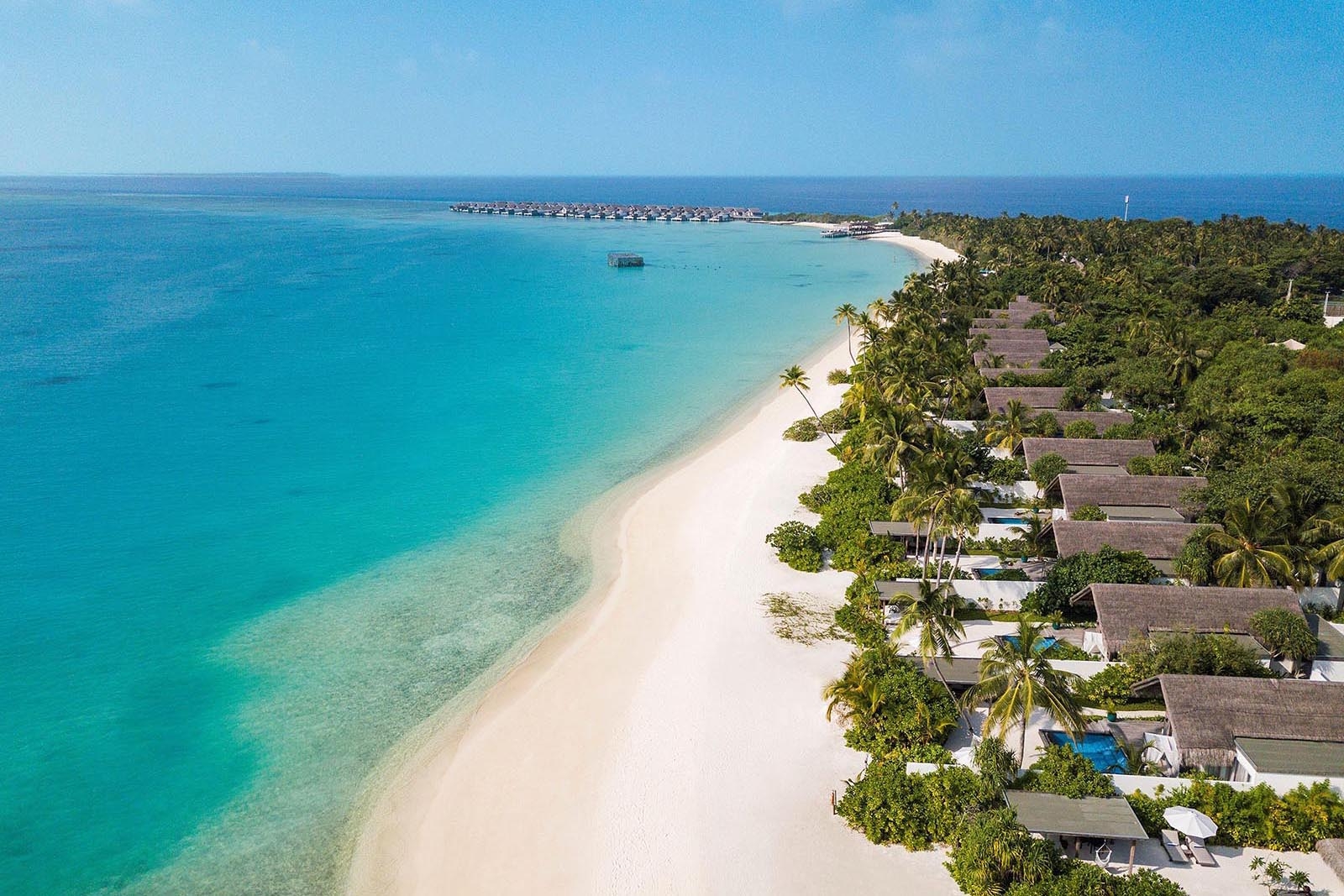 Indulge in the ultimate tropical escape at Sirru Residences, a stunning collection of three beachfront villas that can be enjoyed individually or combined to create a luxurious seven-bedroom retreat, perfectly designed for unforgettable family or group getaways. Set along a pristine, secluded beach, this private paradise offers an exclusive playground for beach sports, dining, and entertainment. Immerse yourself in the breathtaking beauty of the Maldivian sunset, with direct lagoon access for endless aquatic adventures, perfect for all ages.