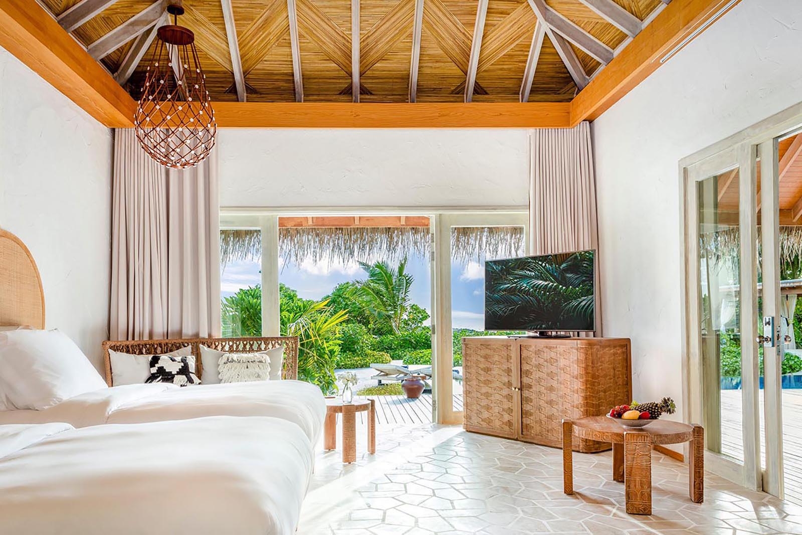 With 750 square metres of luxurious, light-filled living space, our Two Bedroom Sunset Beach Villas can accommodate up to five or six guests for unparalleled escapes. Unwind on idyllic outdoor terraces, plunge into your private pool and stroll along the powder-soft sand.
