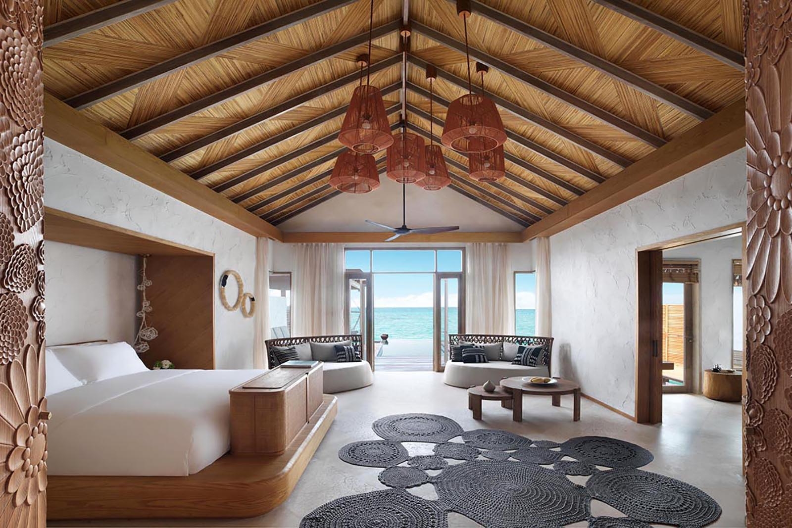Our Sunrise Water Villa is the ultimate haven of tranquility, with 164 square metres of luxurious living space, an elegant alfresco terrace, bespoke amenities and endless views across the shimmering sea. Step down into the vibrant lagoon and snorkel in the crystal-clear waters, and let our personal villa host take care of any requests.