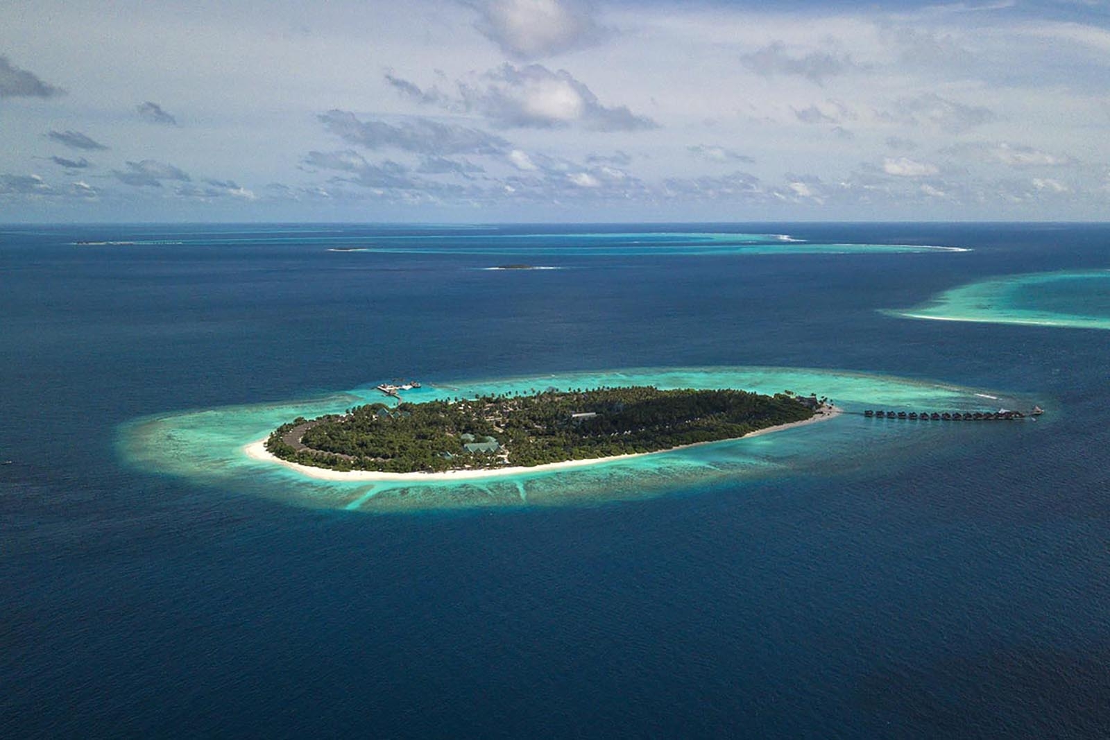 Among tropical gardens on a secluded island in the Raa Atoll, this upscale resort in the Laccadive Sea is accessible only by seaplane or boat.