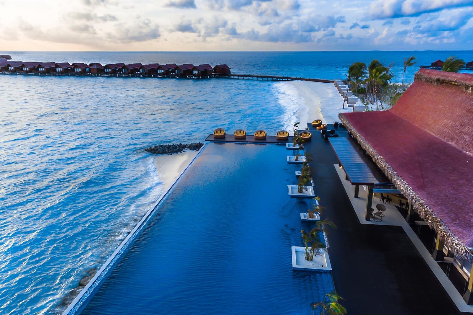 Accessible via speedboat from Velana International Airport, this luxe resort is on a secluded Indian Ocean island.