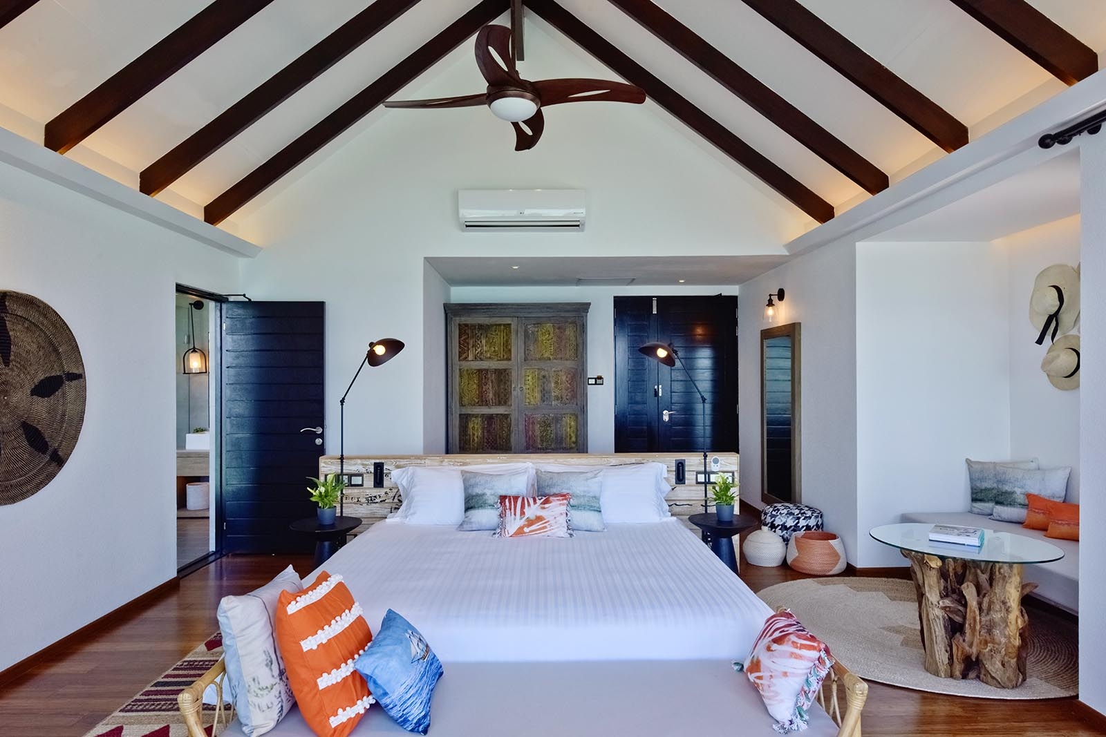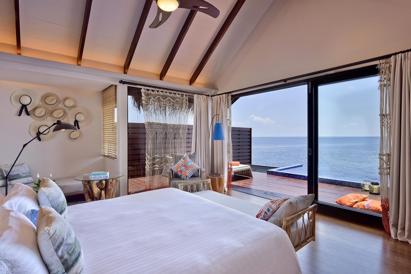 Enjoy the comfort of space and privacy at the pool water villa, where contemporary bright interior hues integrated with woven textures mirror the enchanting beauty of the Maldivian culture and scenery, providing you with an oasis of calm and serenity.