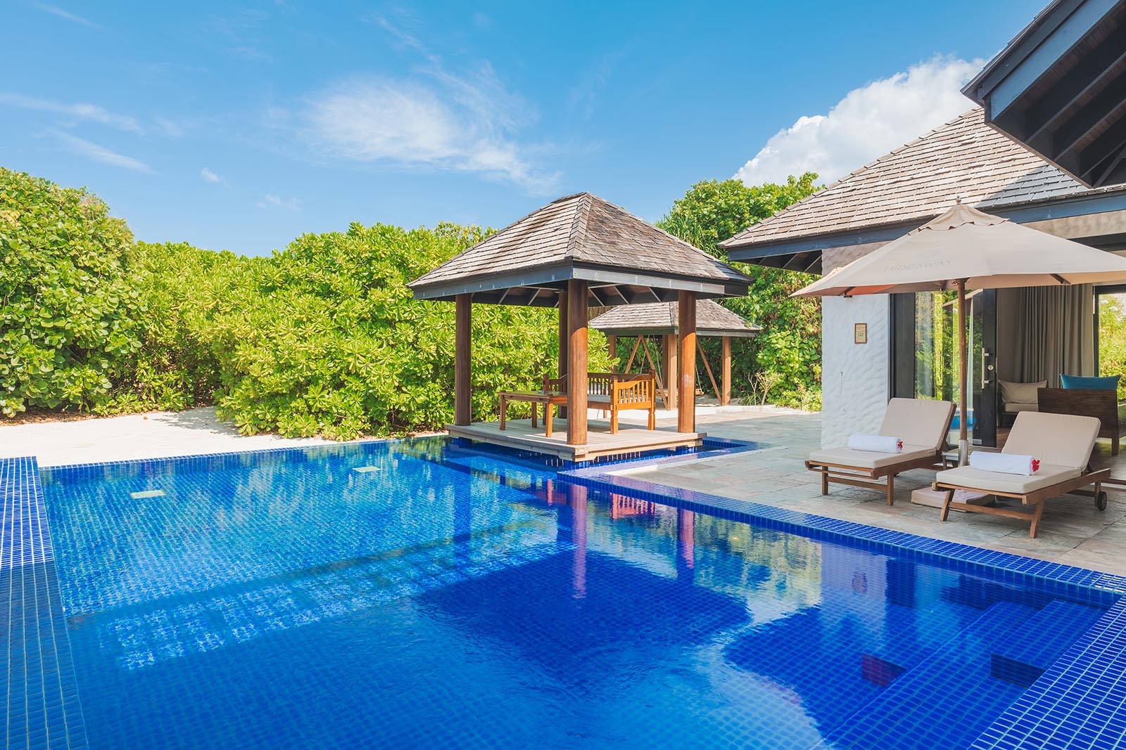 Craft lasting family memories at our three-bedroom Grand Beach Residence. This spacious Maldivian retreat in tropical gardens is the perfect backdrop for unforgettable moments. Enjoy sunny days and starry nights in this immaculate villa with a large pool, luxurious bathrooms, a deck with an outdoor gym, and a gazebo-an unparalleled blend of luxury and comfort.