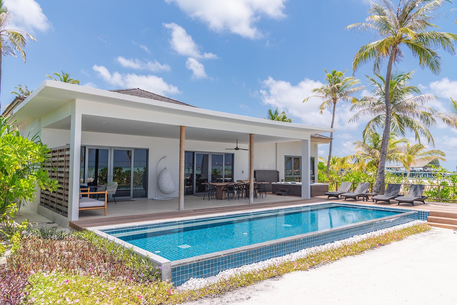Dotted across the expansive whitewashed beach nestled between swaying palm trees and lush greenery, the Beach Villas are ideal for guests who want to step straight off the terrace and feel the sand between their toes, before leaping into the iridescent waters of the lagoon.