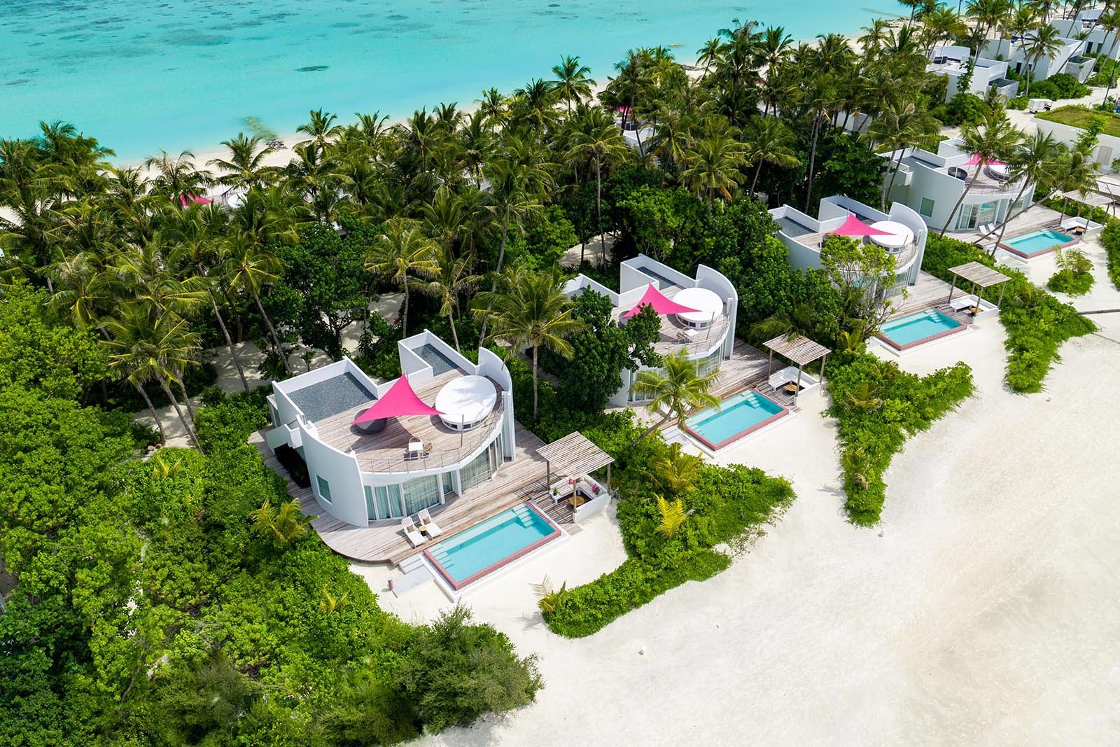 The era-defining luxury resort in the Maldives with dazzling. water villas is a penthouse paradise retreat. Dotted around the island are gorgeous contemporary, two-storey overwater and beach villas, each decked with a private rooftop and a pink-rimmed infinity pool that blends seamlessly with the warm pale-blue waters.
