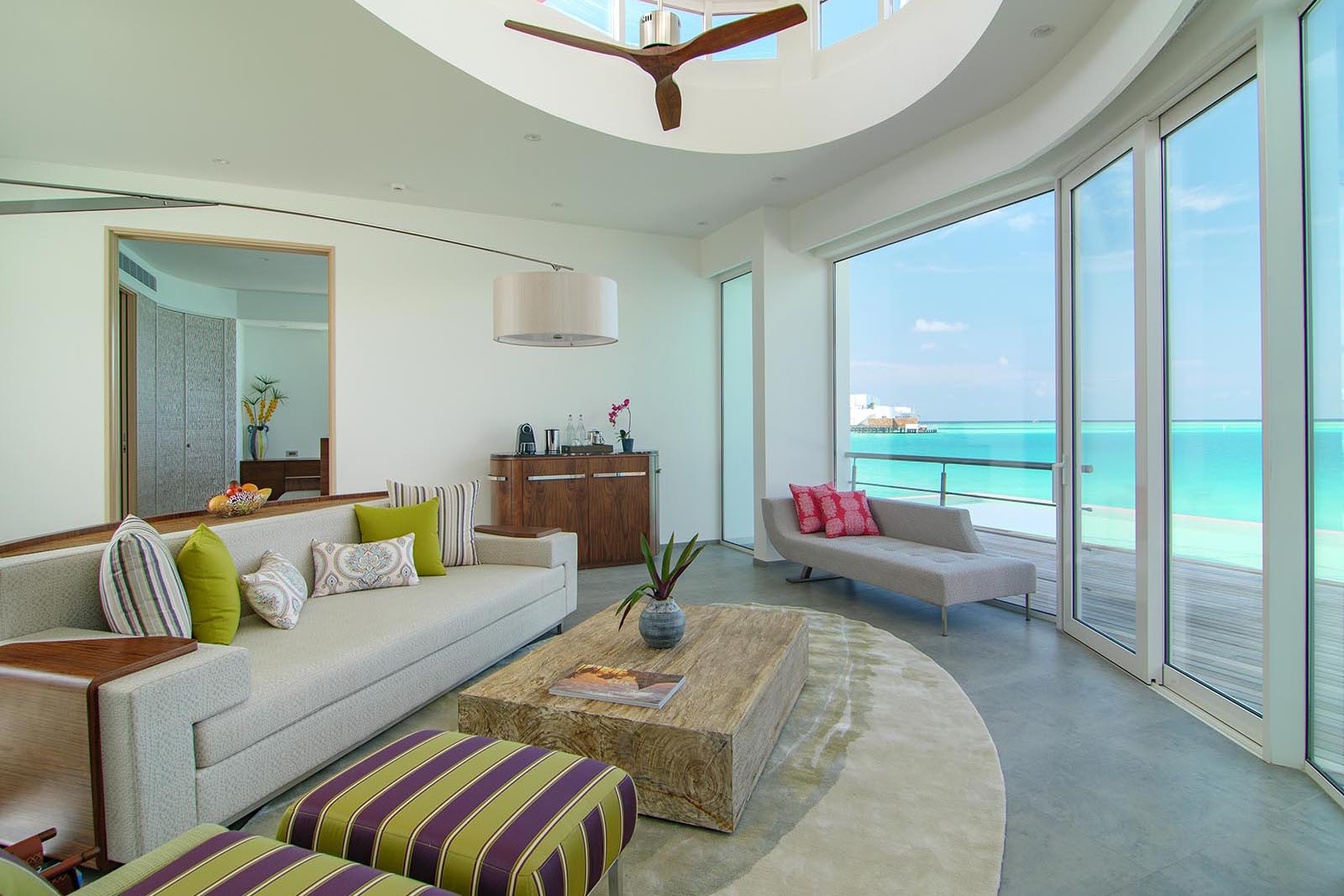 A high-life residence for family or friends, this is the two bedroom villa where South Beach style meets inspired island elegance - and opens on to your own secluded view of sun-dazed sand and sea. If luxury is defined by space, then these showstopper residences just raised the bar - with a footprint of 680 square metres including a 205 square metre indoor living space. The generous expanse of living room is bathed in natural light by floor-to-ceiling windows, while a nautically inspired skylight allows you to capture spectacular views of the dream-like colours of the Maldivian sky.