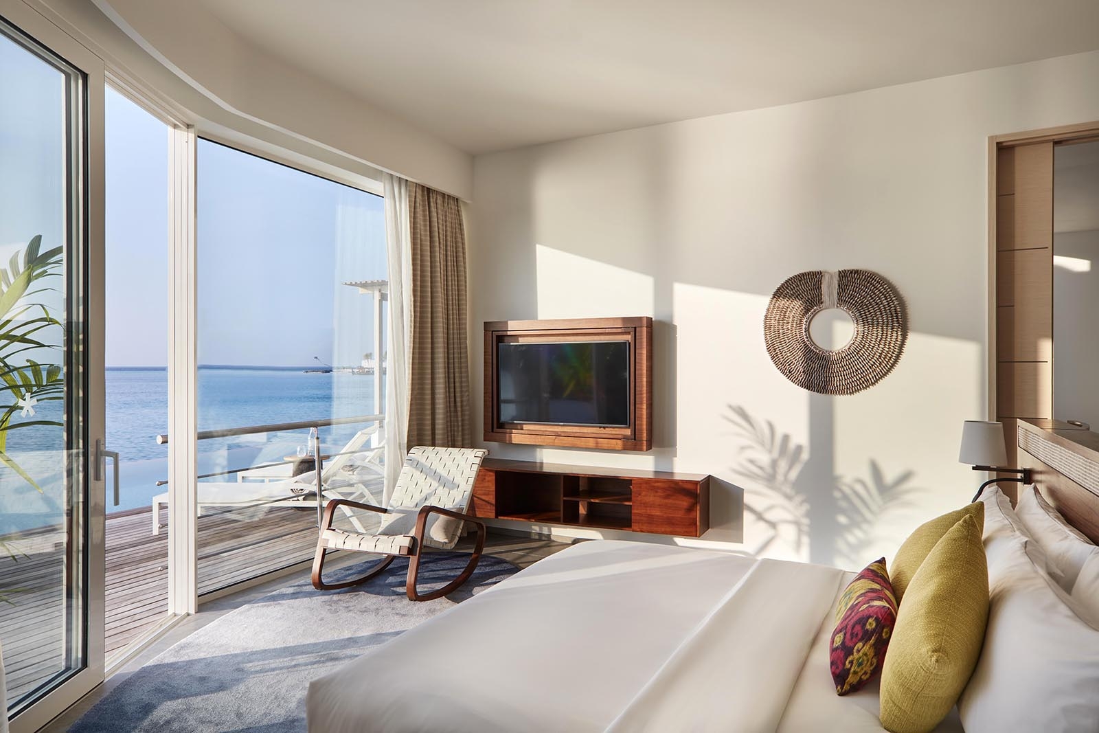 With 680 square metres of indoor-outdoor space for families and friends including a 205 square metre villa, the sense of freedom is accentuated by vast windows and a dramatic skylight that bathe the nautically inspired interiors with sunlight. Each of the four Overwater Residences is blessed with unparalleled rooftop views from its magnificent sky-deck, elevated five metres above the lagoon. These truly unique residences feature pools above the lapping waters of the lagoon, and boast the very best in luxury.