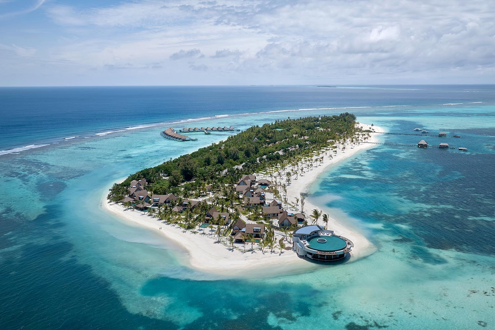 The resort features 91 elegantly designed villas, ranging from beachfront to overwater accommodations, many with private pools and offering sunrise or sunset views.