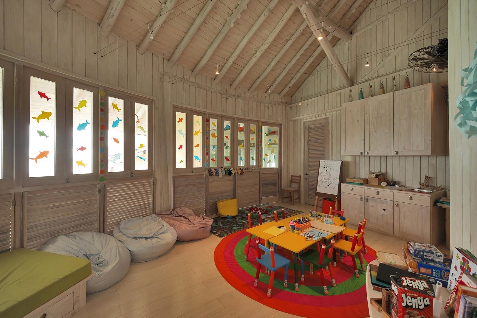 Choose from the tropical sun or the cool shade with two outdoor sunken seating areas, one protected with a roof. Relax by the pool on sun loungers or on catamaran nets. Splash down into the lagoon via your water slide.