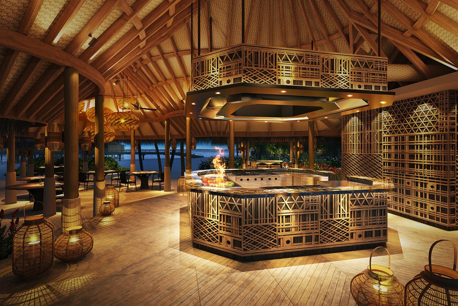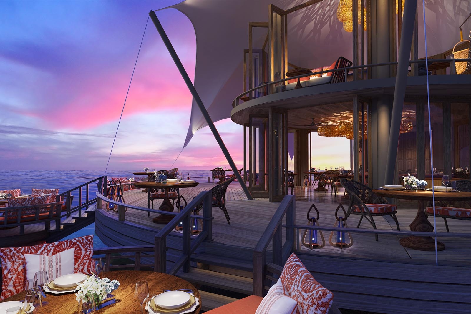 Our signature dining restaurant showcases the refined techniques of European and Mediterranean cuisine, while embracing the purity and vibrancy of Maldivian produce. Every plate is an expression of balance, seasonality, and innovation–inviting you on a sensory journey where technique meets terroir. The lounge on the upper deck is perfect for an intimate pre-dinner rendezvous.