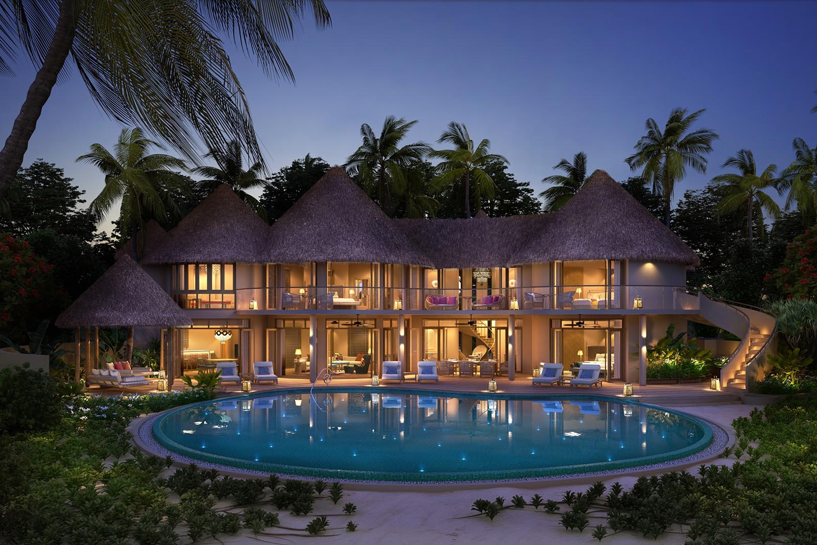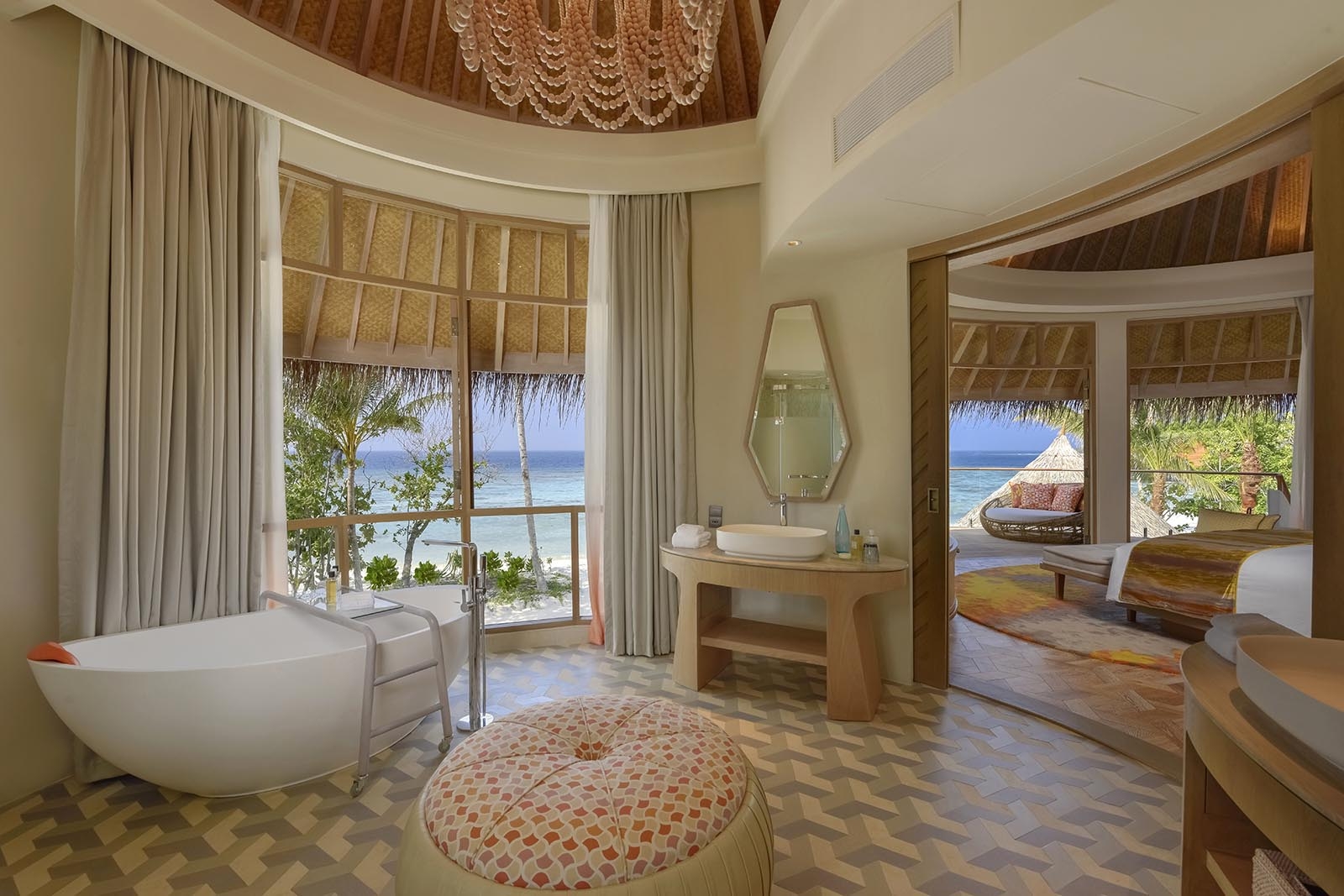 Elegant mansions by the sea, our two-storey beach residence in Maldives are sanctuaries of effortless chic. Each of our beach residences in Maldives features curved walls and living spaces that recall the organic form of the nautilus shell, with hand-picked décor infusing each space with new bohemian charm.