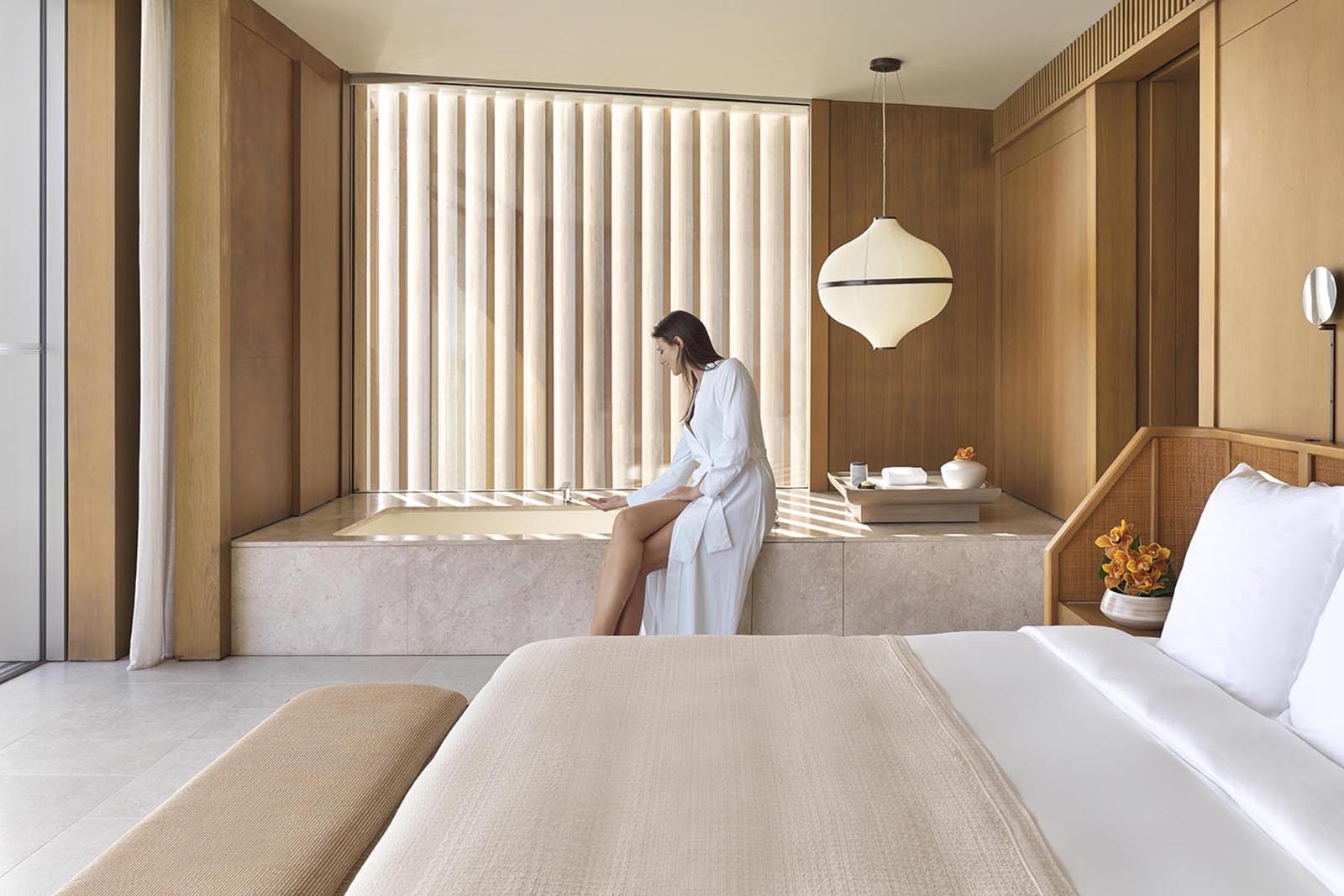 EAU Bar enlivens day to night with its signature Defining Moment. Relax with champagne and fresh, organic cocktails. Enjoy contemporary Japanese cuisine, zero-waste practices, and vibrant beats that lift the evening atmosphere.