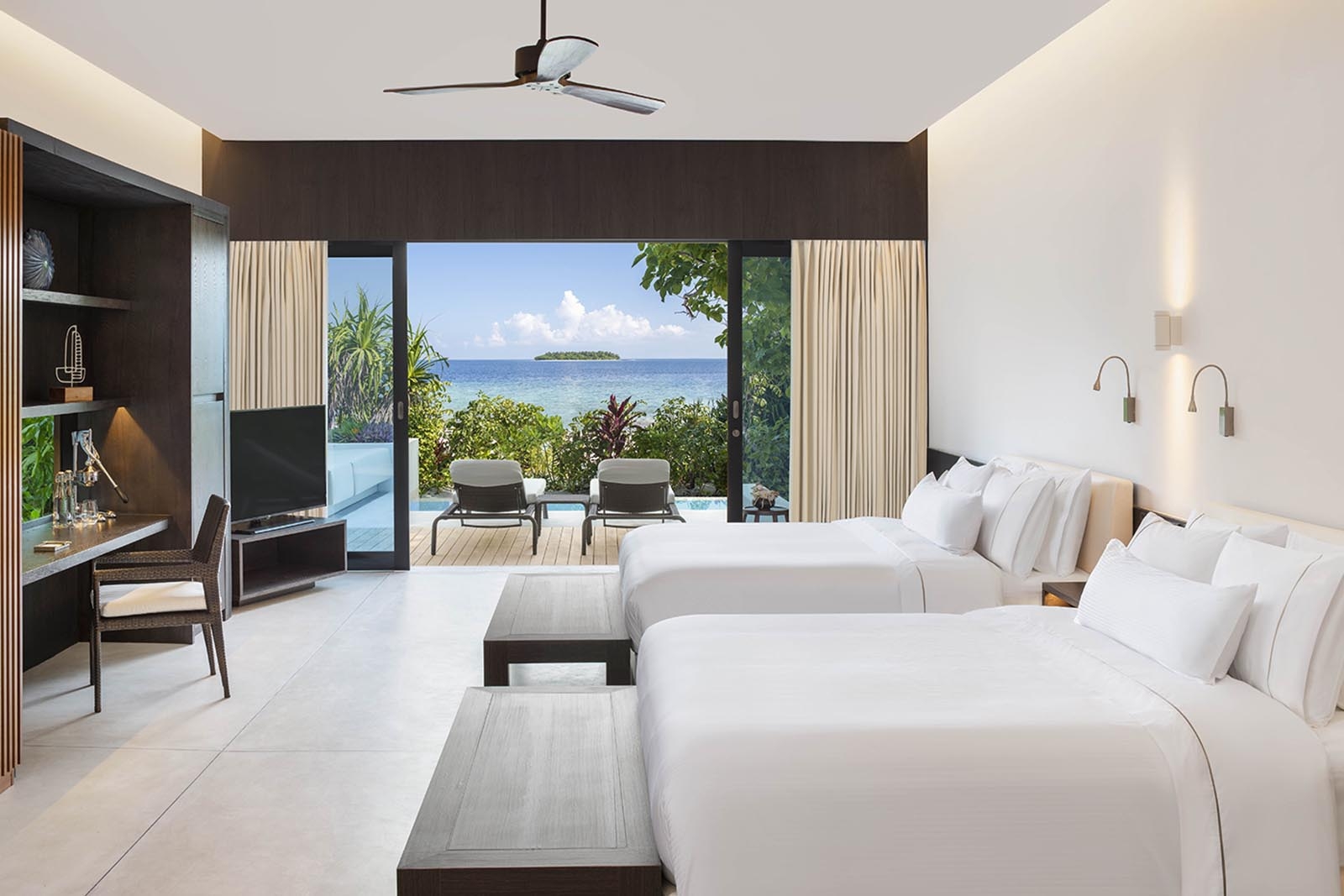 Situated along the palm-fringed shores with direct access to the beach, our Family Beach Villa with Pool offer two doulebeds that can easily accommodate a small family.