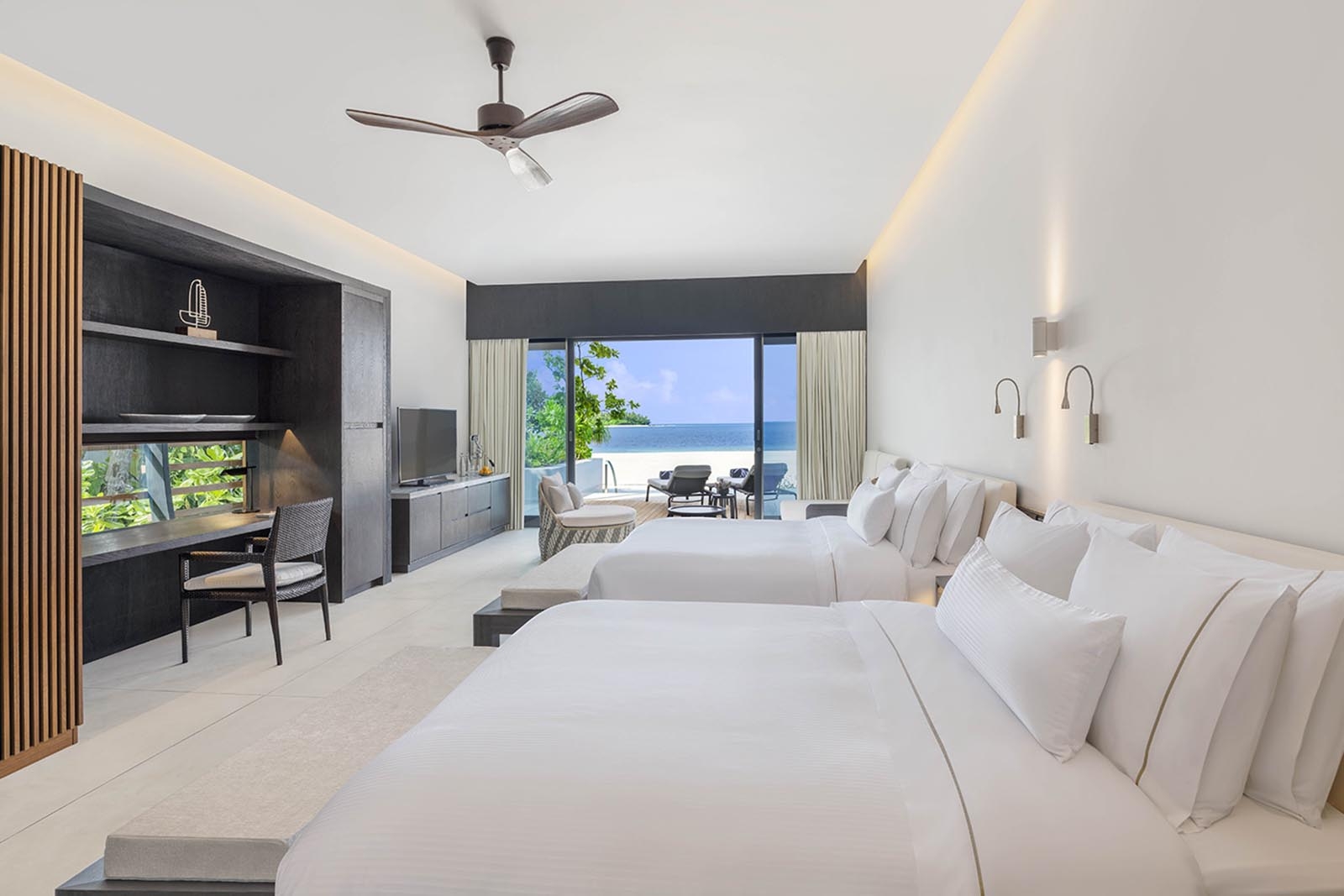 Situated along the palm-fringed shores with direct access to the beach, our Beach Villa with Poollook out onto the vast waters of the Indian Ocean, embodying understated style and designed with elegant open-plan living in mind.